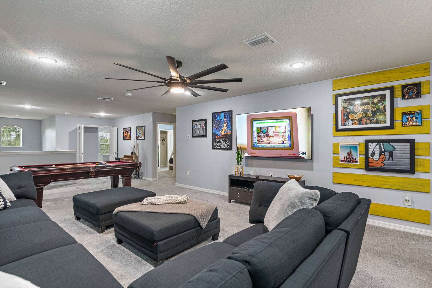 Guests will have complete and private access to the entire house, including the private pool, hot tub, pool table, and home theater. Self check-in is available via a smart lock for your convenience. Your stay also includes full access to the Windsor at Westside resort amenities, which feature: 10,000 sq. ft. gated clubhouse State-of-the-art fitness center Resort-style pool with a lazy river and water playground splash pad Walking paths with beautiful Lake views Tu Casa Cantina and Tiki Bar Volleyball and multi-sport courts Free Arcade Sundries shop Build a bear and kids activities center